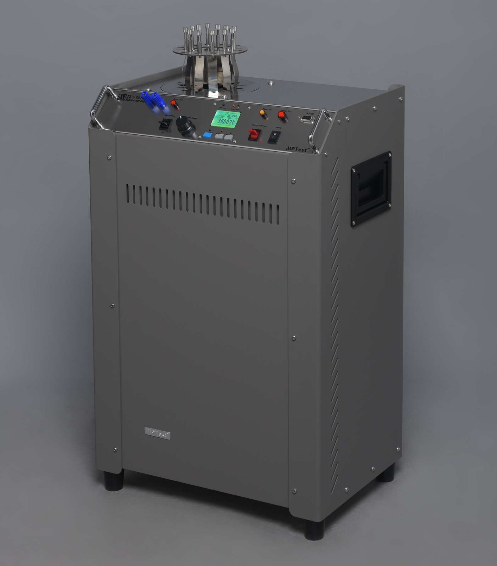 TL-1010N is a compact, portable, and cost-effective universal constant temperature bath specifically designed for mobile metrology applications. This unit can be easily transported in a small sedan, featuring a workspace with a diameter of 138 mm (5.4 inches) and a depth of 400 mm (15.7 inches), while delivering high-precision temperature control performance. It incorporates MPTest's proprietary jet stirring technology, ensuring quiet operation, low vibration, and energy efficiency, with a temperature stability of ±0.002°C. The unit is equipped with MPTest's unique three-button LCD temperature controller for simple and practical operation. The use of antifreeze as the medium is recommended, enabling an operating temperature range from -10°C (14°F) to 100°C (212°F). The included transit case not only protects the instrument during transportation but also serves as a temporary bench stand for instrument placement.